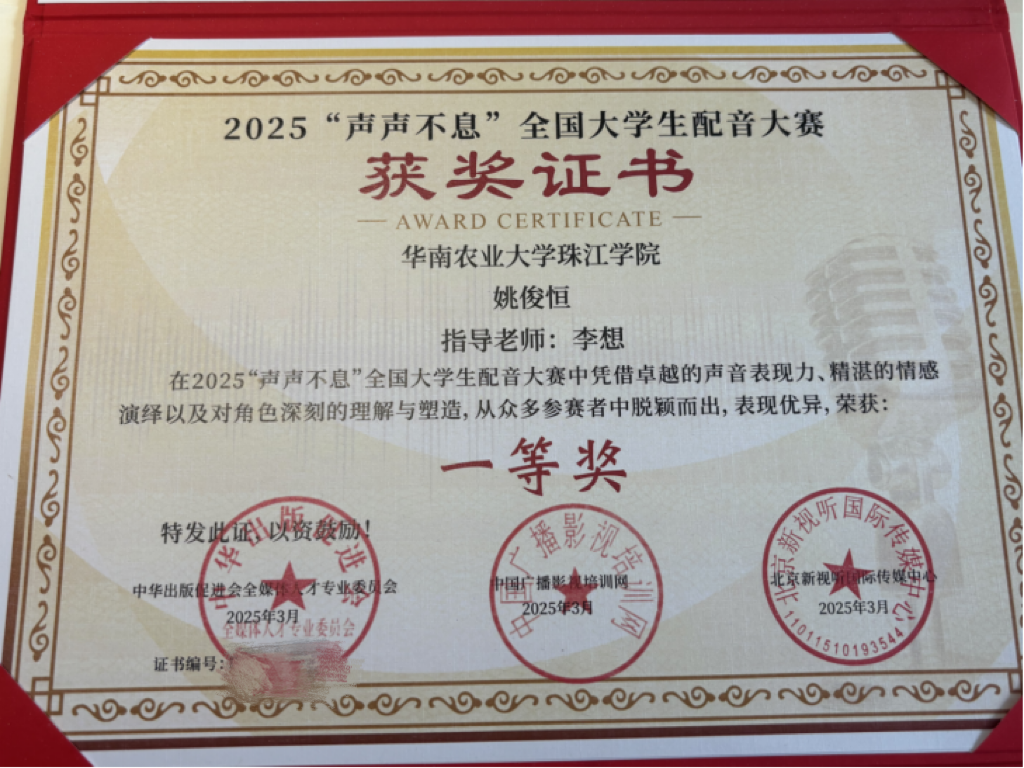 “每份荣誉都是新起点,话筒前的每一秒都在提醒我:真诚与专业方能打动人心。”三年来,姚俊恒始终以谦逊之心精进技艺。他用舞台上的从容自信诠释热爱,将每一次登台化为通向梦想的坚实台阶。