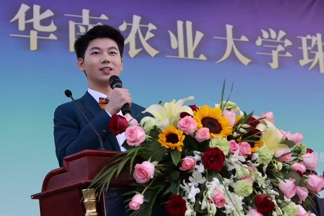 姚俊恒的成长足迹离不开多位师长的悉心指引。国际传播学院刘光磊院长与邢永川教授等多位教师以专业素养和耐心指导,为他筑牢播音基础。专业课教师李想是他口中的“引路人”。“李老师从不否定我的‘土方法’,而是引导我将热情转化为专业技巧。”一次省赛前,李老师与他并肩作战,逐字打磨稿件至凌晨,甚至亲自示范如何用眼神与观众进行有效互动。而体育学院院长简妮娜教授,则为他打开了校外实践的大门。“简院长推荐我主持从化区五四晚会时,我紧张得手心冒汗。但她告诉我:‘舞台不会辜负准备充分的人。’”这些经历让姚俊恒从“校园主持一哥”逐渐成长为能驾驭大型活动的专业主持人。