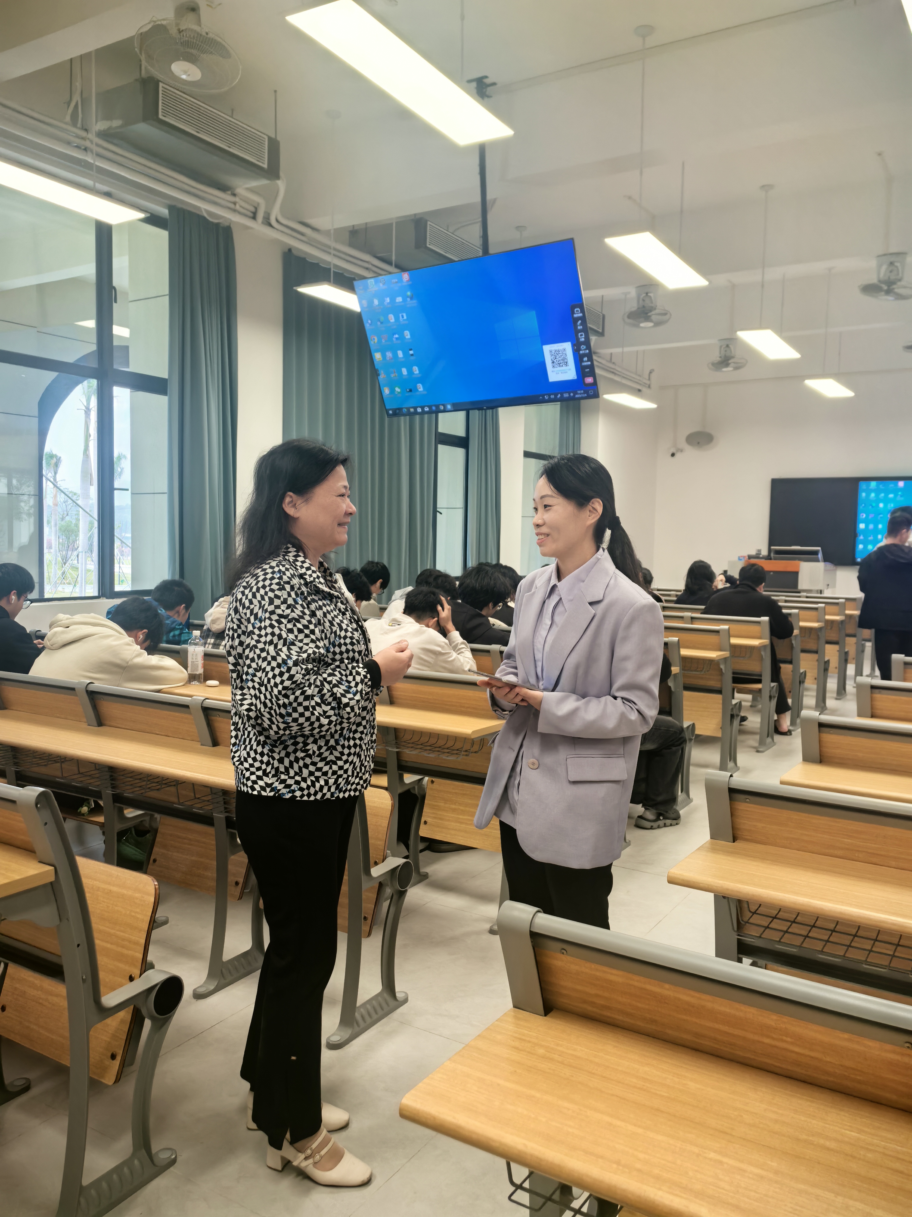 在肇庆(四会)校区,省教指委专家何宇红教授听取了王瑞鹤老师讲授的《思想道德与法治》课程第四章第一讲“全体人民共同的价值追求”。王瑞鹤老师紧扣社会主义核心价值观的主题,理论联系实际,讲解透彻,逻辑清晰,注重启发学生思考,展现了良好的教学驾驭能力与育人意识。听课结束后,专家与任课教师进行了深入交流。何宇红教授对王瑞鹤老师的授课给予了高度评价,认为王瑞鹤老师的授课能够精准把握教学内容核心,以生动平实的语言将抽象理论转化为贴近学生生活的实践指引,讲解层层深入、富有逻辑。在传递知识的同时,以真诚而富有感染力的方式引导学生进行价值思考与精神内化,课堂氛围认真而活跃,体现了思政课育人润心的良好效果。