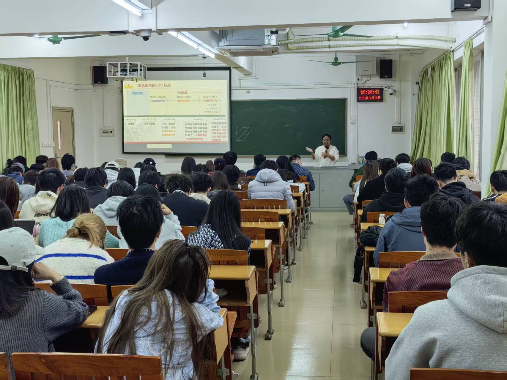 在广州(从化)校区,省教指委专家罗立军教授听取了杨艳老师主讲的《形势与政策》课程第一专题“纪念抗战胜利,坚定民族信念”的授课内容。杨艳老师以“纪念抗战胜利,坚定民族信念”为题,深入讲解了九一八事变、“卢沟桥事变”“战略防御阶段的正面战场和敌后战场”“战略相持阶段的《论持久战》、百团大战”“战略反攻阶段的正面战场和敌后战场”、“抗战胜利纪念日”等主要内容。杨艳老师以扎实的学识功底和严谨的治学态度,将深奥的理论转化为鲜活的教学案例,通过层层递进的讲解和富有感染力的语言,引导学生深入思考、主动探索。其教学过程中展现出的理论深度、情感温度和思想高度,不仅赢得了学生的认可,更获得了省教指委专家的好评。